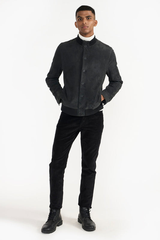 Black Striped Hybrid Varsity Jacket-GLJK137