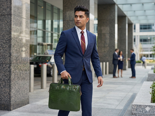 Emerald Croc-Textured Premium Leather Laptop Bag