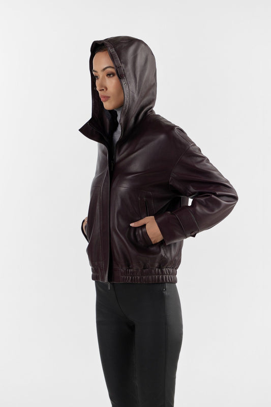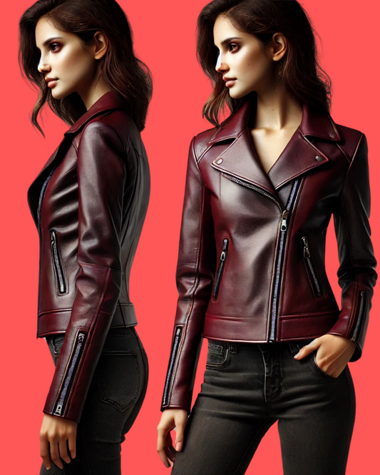 Maroon Luxe: Women Soft Sheep Leather Cropped Jacket – Asymmetrical Zipper, Modern Fit-GLJK3